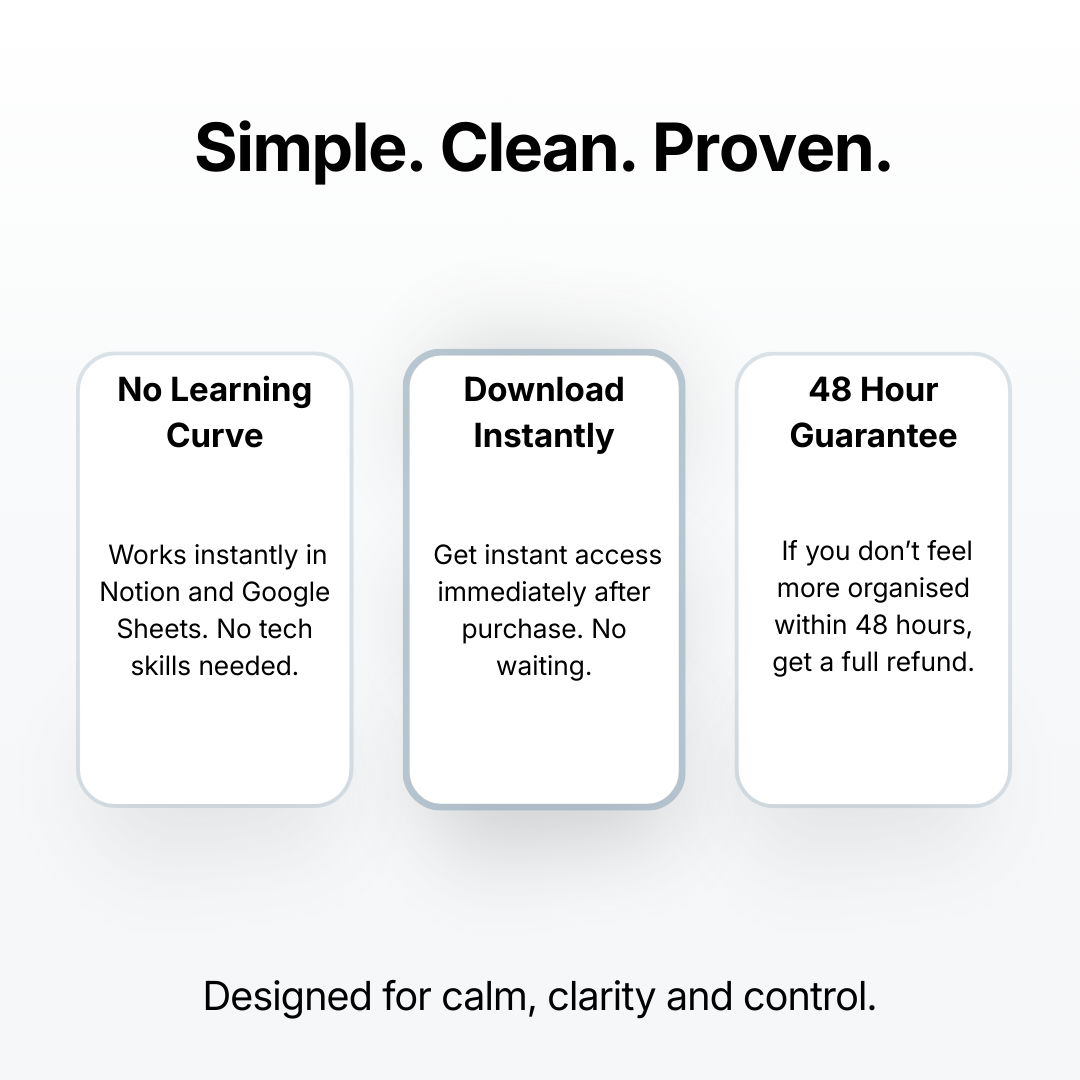 If you don’t feel more organised within 48 hours, email us for a full refund - no questions asked.