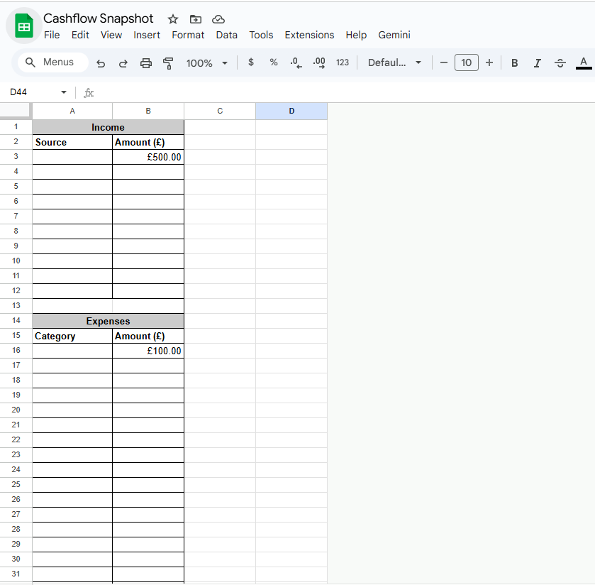 Cashflow Snapshot