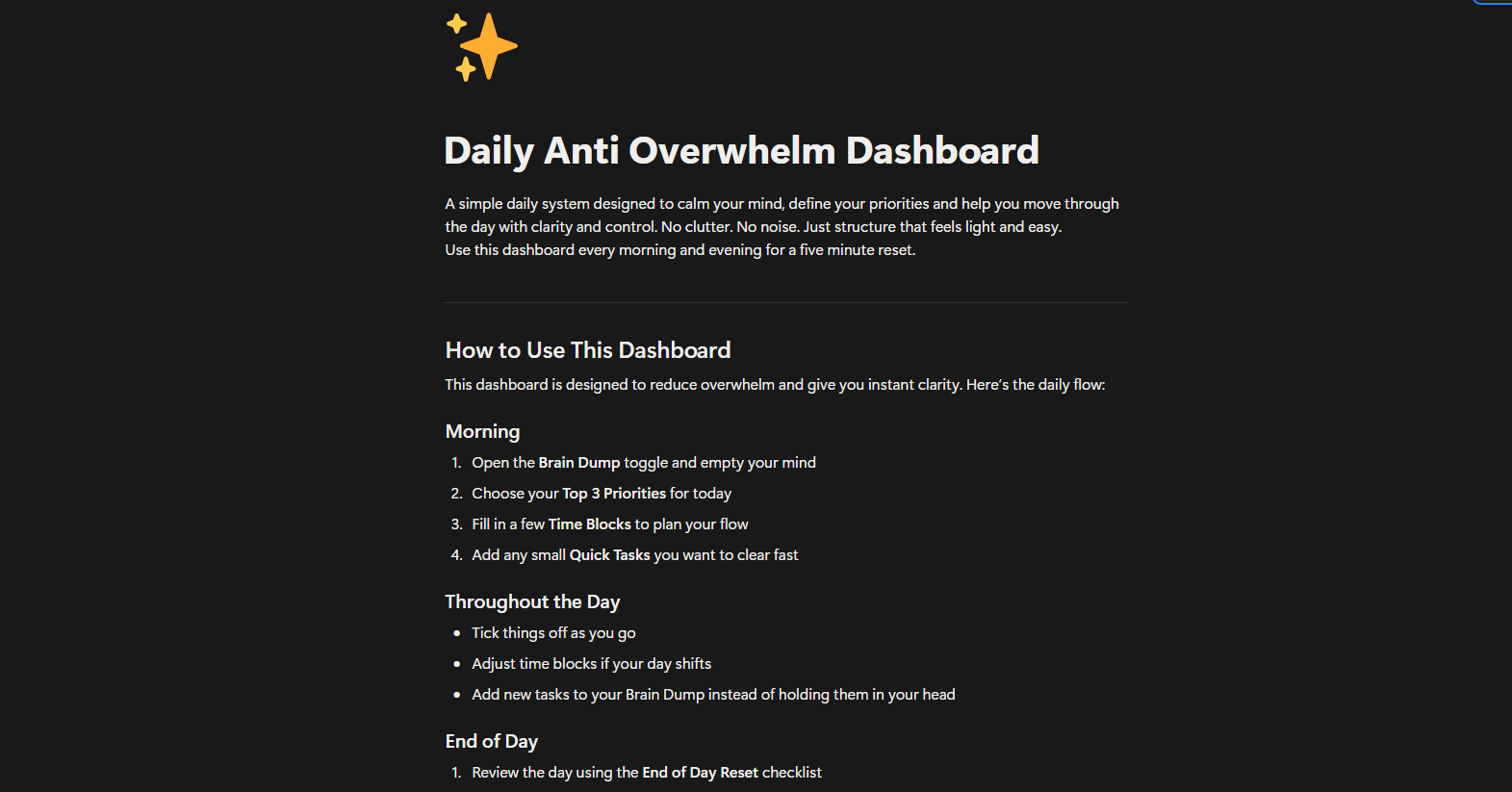 Daily Anti Overwhelm Dashboard